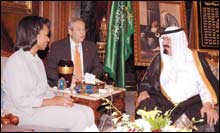 * جدة - واس: استقبل خادم الحرمين الشريفين الملك عبدالله بن عبدالعزيز آل سعود -حفظه الله- في قصره بجدة مساء أمس معالي وزيرة الخارجية الأمريكية كونداليزا رايس والوفد المرافق لها. ونقلت معاليها لخادم الحرمين الشريفين خلال الاستقبال تحيات وتقدير فخامة الرئيس جورج دبليو بوش