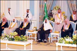* الرياض - واس: استقبل خادم الحرمين الشريفين الملك عبد الله بن عبد العزيز آل سعود -حفظه الله- في الديوان الملكي بقصر اليمامة أمس أصحاب السمو الملكي الأمراء وكبار موظفي الديوان الملكي وكبار موظفي ديوان رئاسة مجلس الوزراء وقادة وضباط الحرس الملكي. كما استقبل الملك المفدى