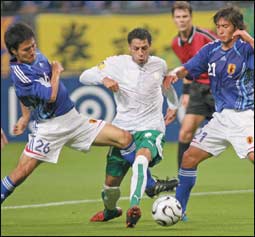 * تحليل - سلطان المهوس: حافظ المنتخب السعودي الأول لكرة القدم على صدارة الترتيب العام لمجموعته الآسيوية برغم خسارته أمس أمام اليابان (1 - 3) في مباراة ظهر فيها الأخضر بمستوى فني ضعيف وبأداء عناصري باهت وغير مقنع تسببت فيه التوليفة والطريقة التي دخل بها المدرب البرازيلي ماركوس باكيتا للمباراة حيث انتهى الشوط الأول بتقدم اليابان بهدفين لتوليو وجاناهي فيما سجل للأخضر ياسر القحطاني من ضربة جزاء وفي الشوط الثاني سجل اليابانيون هدفهم الثالث عن طريق جاناهي وأضاعوا ضربة جزاء في الوقت بدل الضائع، وقد أشهر الحكم البطاقة الحمراء للمدافع السعودي حمد المنتشري الذي تسبب بضربة الجزاء. المباراة أثبتت أن المنتخب السعودي يحتاج إلى الكثير لكي يظهر كمنافس في أمم آسيا 2007م خاصة في عنصري التجانس والتكنيك. الشوط الأول دخل المدير الفني للمنتخب السعودي ماركوس باكيتا بتشكيلة عناصرية مكونة من ياسر المسيليم (حارس) رضا تكر، حمد المنتشري، أحمد الدوخي، صالح الصقري (دفاع) حسين عبد الغني، محمد أمين، خالد عزيز، عمر الغامدي، (وسط) عيسى المحياني، ياسر القحطاني (هجوم). واتضح من خلال التشكيل اعتماده على طريقة لعب 4 - 4 - 2 تتحول إلى 3 - 4 - 3 في حالة الهجوم حيث يتراجع عزيز مع تكر والمنتشري وينضم الدوخي والصقري إلى الغامدي وعبد الغني ويزداد الهجوم بدخول محمد أمين مع المحياني والقحطاني. في حين دخل المنتخب الياباني بتشكيل مكون من كواجوشي (حارس) كونونو، ماجونج، جاهوا (دفاع) ساكوكي، توليو، سوزوكي ماكي، ناكامورا (وسط) اليكس سانتوس، جاناهاي (هجوم). وقد اعتمد المنتخب الياباني على طريقة 3 - 5 - 2 وذلك بالضغط على لاعبي الوسط وعدم ترك المساحات وخلق الفرص الارتدادية عن طريق سانتوس من اليسار وتوليو من اليمين مع تغيير أسلوب الارتداد إلى اللعب الطولي بدلاً من التناقل السريع للكرة كما هو معتاد وذلك لاستغلال خروج الدوخي والصقري من مركزيهما. حذر من الطرفين بداية الشوط شهدت حذراً واضحاً من الطرفين حيث كان وسط الملعب وخطا الدفاع مسرعين لتبادل الكرات بين اللاعبين بدون نوايا هجومية واضحة بالرغم من محاولة اليكس سانتوس في الدقيقة الخامسة الذي حاول اسقاط الكرات خلف المسيليم لكنها خرجت بجانب القائم ليرد عليه أمين بأول وصول للمرمى الياباني عبر تسديدة قوية اصطدمت بالدفاع ولم تكن لهاتين الهجمتين أي أثر في ارتقاء الرتم الفني للمباراة إذ استمر الحذر من الطرفين وسادت بعض العشوائية تمريرات لاعبي الوسط خاصة من الجانب السعودي. بداية يابانية البداية والمبادرة الهجومية كانت لصالح اليابانيين منذ الدقيقة الثامنة عشرة حيث تم كسر طوق الحذر بعد أن استغلوا عدم ترابط لاعبي المنتخب السعودي وغياب انسجامهم وفي أول اختبار حقيقي للمسيليم أرسل ماكاي تصويبة هائلة أخرجها المسيليم ببراعة ضربة ركنية. هدف ياباني فتحت هذه التسديدة شهية لاعبي اليابان ولذلك لم يفوتوا الضربة الركنية التي بعدها ليعلن اللاعب الياباني توليو قص شريط أهداف اللقاء عند الدقيقة الواحدة والعشرين إثر ضربة ركنية سددها ماكي رأسية بعدها المسيليم وينفذها الدوخي قبل دخولها المرمى لترتد لتوليو غير المراقب الذي بدوره سددها مرتاحاً في المرمى كهدف ياباني أول جاء مستحقاً عطفاً على الجمود الفني والحركي الذي ظهر فيه لاعبو المنتخب السعودي. ارتباك سعودي أعطى هذا الهدف الثقة لليابانيين وعزز من حضورهم الفني الهجومي وهو ما بدا واضحاً إثر غزارة الهجمات التي اجتاحت المرمى السعودي بعد الهدف جاءت أولها في الدقيقة 23 عن طريق جاناهاي الذي سدد كرة قوية مرت بجوار القائم ليعود ماكي ويراوغ في الدقيقة السادسة والعشرين الدفاع السعودي ويعكس كرة لليسار خرج لها الفير مراقب ساسوكي وسددها قوية مرت بجوار القائم ثم رأسية سانتوس في الدقيقة سبع وعشرين نفذها المسيليم. هدف ياباني ثانٍ استطاع نجم اليابان جاناهي أن يستغل الارتباك السعودي ويضاعف النتيجة لصالح بلاده بعد أن سجل هدفاً رأسياً ثانياً في الدقيقة الت