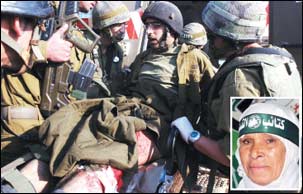 * غزة- رام الله - بلال أبودقة - رندة أحمد : فجرت سيدة فلسطينية نفسها أمس الخميس بين مجموعة من الجنود الإسرائيليين يعملون في (عسكرية) في جباليا ما أدى إلى إصابة 3 منهم، واعترف الجيش الإسرائيلي على لسان المتحدثة باسم الجيش الإسرائيلي بإصابة اثنين من جنوده فقط في حين أكدت كتائب عز الدين القسام