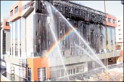 * الرياض - سعود الشيباني: اندلع يوم أمس حريق في عمارة مكونة من ستة أدوار (تحت الصيانة) وقد باشر الحادث الدفاع المدني بمنطقة الرياض وقام بإخماد الحريق على الفور. وأكد الرائد خالد الحقباني أن الدفاع المدني حال تلقي البلاغ باشر بثمان فرق من بينها فرقة إنقاذ حيث تمت السيطرة على الحريق قبل