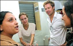 الممثلة أنجيليا جولي سفيرة النوايا الحسنة وزوجها براد بت يزوران لاجئين كولومبيين للمساعدة والتهنئة بأعياد الميلاد