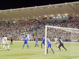 ضربة البداية كانت لصالح الفريق الأهلاوي ومع تنفيذها شهدت المباراة سرعة في الأداء من كلا الفريقان وهجمات متبادلة على المرميين وبالذات الفريق الاتحادي الذي تحصل على ضربتي زاوية خلال الثلاث الدقائق الأولى بفضل تحركات كيتا ومساندة نور وتشيكو ومناف أبو شقير في الوسط الاتحادي الذي بسط نفوذه الكاملة على ملعب المباراة وأوصل مهاجميه لمرمى الأهلي فيما تراجع وسط الأهلي لمساندة دفاع فريقه ليظل مالك وبيانو معزولين وسط كماشة دفاع الاتحاد الذي شتت جميع الكرات العالية التي كانت تصل لمهاجمي الأهلي ماعدا بعض التحركات والمناوشات التي يقوم بها مالك معاذ وفي الدقيقة (16) ومن ضربة زاوية نفذها تشيكو على رأس أسامة المولد لعبها قوية بجوار القائم كأخطر كرة خلال الربع ساعة الأولى من هذا الشوط ليرد عليها مالك معاذ بتسديدة قوية يمسكها آل نتيف على دفعتين ويعقبها بيانو بتسديدة أخرى قوية أبعدها آل نتيف خارج المرمى ويتحصل الأهلي على خطأ نفذه بيانو قوية أرضية بجوار المرمى ومن كرة مرتدة مررها تشيكو للفيس واجه بها حارس الأهلي وسددها أرضيه أبعدها المسيليم وتعود للدفاع الذي أنهى خطورتها عن مرماه وفي غفلة من وسط الاتحاد الذي هبط أداء عناصره تقارب وسط وهجوم الأهلي وهدد المرمى الاتحادي بكرات متبادلة بين مالك وبيانو وتيسير الجاسم وكايو ومحمد مسعد الذي سدد كرة قوية أبعدها آل نتيف وهو ساقط على الأرض في الدقيقة (29) وفي الدقيقة (31) كرر أسامة المولد كراته الرأسية القوية من كرة عرضية لعبها المنتشري اعتلت المرمى الأهلاوي وفي الدقيقة (34) ومن كرة طويلة لعبها عدنان فلاتة للمنطلق كيتا واجه بها دفاع وحارس الأهلي يغمزها برأس القدم أرضية داخل المرمى كهدف اتحادي أول في هذا الشوط منح لاعبو الاتحاد الهدوء والتركيز في الألعاب في وسط الميدان فيما فقد الأهلاويون التركيز وعادوا للتسرع بغية معادلة النتيجة قبل نهاية هذا الشوط إلا أن صافرة الحكم الألماني بيرك كانت هي الأسرع بعد أن أطلقها معلناً نهاية هذا الشوط اتحادية بهدف الحسن كيتا. وكان الألماني بيرك قد منح خلال مجريات هذا الشوط بطاقتي إنذار للبرازيلي كايو من الأهلي وعدنان فلاتة من فريق الاتحاد نظير الألعاب الخشنة.