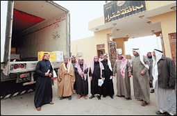 استقبلت محافظة شقراء المساعدات التي أمر بها خادم الحرمين الشريفين الملك عبد الله بن عبد العزيز - حفظه الله - للمتضررين من برد الشتاء القارص لهذا العام من المواد الغذائية المختلفة وكذلك المواد العينية الأخرى من بطانيات ودفايات وأجهزة تدفئة مختلفة كدفعة أولى، حيث قام بالإشراف على تسلُّمها محافظ شقراء بالنيابة عبد الله سليمان الحمود بحضور مدير مكتب وزارة المالية بشقراء المهندس علي عبد العزيز السبيعي وأمين صندوق الجمعية الخيرية بشقراء إبراهيم الجماز وذلك بعد وصولها إلى مبنى المحافظة ثم وجهت إلى المستودع الخيري التابع للجمعية الخيرية بشقراء.