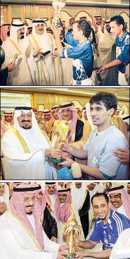 نيابة عن صاحب السمو الملكي الأمير سلطان بن عبدالعزيز آل سعود ولي العهد نائب رئيس مجلس الوزراء وزير الدفاع والطيران والمفتش العام يرعى صاحب السمو الملكي الأمير سلمان بن عبد العزيز أمير منطقة الرياض مساء اليوم الجمعة المباراة النهائية لمسابقة كأس ولي العهد والتي تجمع فريقي ...>>>... |