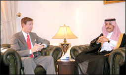 وفي تصريح خاص ل(الجزيرة) أكد السفير الأمريكي أن نائب الرئيس الأمريكي ديك تشيني سيقوم بزيارة الشرق الأوسط ومنها زيارة المملكة العربية السعودية حيث سيلتقي بخادم الحرمين الشريفين وكبار المسئولين في المملكة وأضاف أنني سعيد جدا بحضور نائب الرئيس الأمريكي إلى المملكة.