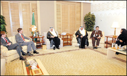 استقبل صاحب السمو الملكي الأمير فيصل بن بندر بن عبدالعزيز أمير منطقة القصيم في مكتب سموه بمقر ديوان الإمارة بمدينة بريدة ظهر أمس الاثنين بحضور صاحب السمو الملكي الأمير الدكتور فيصل بن مشعل بن سعود بن عبدالعزيز نائب أمير منطقة القصيم سعادة السفير الأمريكي لدى المملكة السيد فورد فريكر الذي يزور منطقة القصيم والوفد المرافق له.
