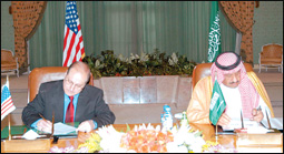 بعد ذلك وقَّع صاحب السمو الملكي الأمير خالد بن سلطان بن عبدالعزيز الاتفاقية النهائية لاجتماع أعمال لجنة التخطيط الاستراتيجية المشتركة مع وكيل وزارة الدفاع الأمريكية للسياسات السيد أدلمان. إثر ذلك تبادل الجانبان الهدايا والتقطت الصور التذكارية بهذه المناسبة.حضر الاجتماع ومراسم توقيع الاتفاقية رئيس هيئة استخبارات وأمن القوات المسلحة اللواء الركن عبدالرحمن بن عبدالله المرشد ومدير إدارة المشتريات الخارجية اللواء المهندس عبدالعزيز بن محمد الحسين ورئيس هيئة عمليات القوات المسلحة اللواء الركن حسين حبتر ونائب قائد القوات الجوية اللواء الطيار الركن محمد بن عبدالله العايش.