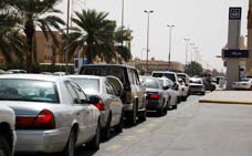 صف طويل من المواطنين أمام إحدى مكائن الصرف الآلي في عنيزة في انتظار دورهم لبيع أسهمهم في شركة (زين) للاتصالات, والذي بدأ التداول فيها أمس السبت.وفي الاطار مواطنو جازان امام احد الصرافات