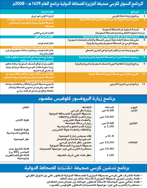 11 - برنامج كرسي الجزيرة التدريبي لمنسوبي صحيفة الجزيرة وللطلاب والطالبات بجامعة الملك سعود وغيرهم من منسوبي الصحافة والإعلام بالمملكة.