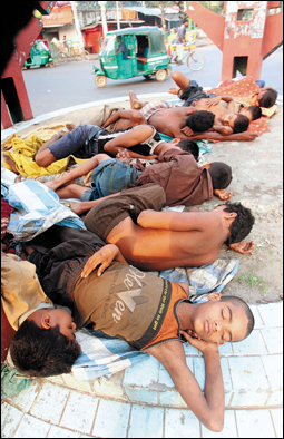 أطفال مشردون اتخذوا وسط دكا مكاناً للنوم |
