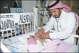 تابع خادم الحرمين الشريفين الملك عبدالله بن عبدالعزيز - حفظه الله - أمس حالتي التوأم السيامي العراقي والمغربي اللذين يتلقيان العلاج بمدينة الملك عبدالعزيز الطبية للحرس بالرياض. واطمأن - أيده الله - على آخر الفحوصات السريرية والتشخيصية والمخبرية التي أجريت لهما أخيراً من قبل الفريق الطبي المتابع لحالتهما.