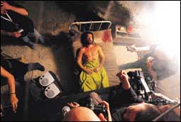 الممثل الإيرلندي كولن فاريل أثناء تصوير فيلمه الجديد (حزن مظلم) في منطقة الترياج قرب اليكانتا الإسبانية حيث يقوم فاريل بدور مصور صحافي في البوسنة في الفيلم الذي كتبه سكوت أندرسون ويخرجه دانيس تانوفيتش الذي حصل فيلمه (الأرض المحايدة) على جائزة الأوسكار للأفلام باللغة الأخرى عام 2002م. |