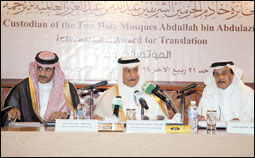 وأضاف معاليه أن الصدى الكبير الذي حققته الجائزة وتفاعل عدد كبير من المؤسسات الثقافية والعلمية المحلية والإقليمية والعالمية معها يؤكد نجاحها في تحقيق أهدافها في مجال تبادل المعارف وتقوية أواصر التفاعل بين الثقافة العربية الإسلامية والثقافات الأخرى، وأشار ابن معمر إلى أن هذا النجاح الذي حققته الجائزة في عامها الأول يعد نجاحاً لمشروع خادم الحرمين الحضاري لإشاعة قيم الحوار وثقافته في المجتمع السعودي والتي تنبع من وسطية الإسلام الحنيف ودعوته المتجددة لنبذ دعاوي الصراع الحضاري والسعي إلى نقاط الالتقاء المشتركة للتعايش في عالم يسوده السلام والتفاهم والتعاون من أجل التقدم والرخاء لكل الإنسانية، وعبر المشرف على مكتبة الملك عبدالعزيز العامة عن أمله أن تسهم الجائزة في تنشيط حركة الترجمة العربية وتخليصها من حالة الركود والتي تؤكدها تقارير المنظمات الدولية وأن تكون بداية لانطلاقة قوية للترجمة في جميع المجالات المرتبطة بالجائزة والمترتبة عليها، وبين معاليه أن اختيار الفائزين جاء وفق جملة من المعايير والضوابط العلمية الدقيقة التي وضعها متخصصون وخبراء في معايير الترجمة إذ قررت اللجنة العلمية للجائزة منح جائزة خادم الحرمين الشريفين العالمية للترجمة في مجال جهود المؤسسات والهيئات لمجمع الملك فهد لطباعة المصحف الشريف لتميز أعماله المترجمة كماً ونوعاً ولترشيحه من جهات حكومية وغير حكومية عدة ولكونه من أبرز المؤسسات التي عنيت بالترجمة، كما منحت جائزة الترجمة في مجال العلوم الطبيعية من اللغات الأخرى إلى اللغة العربية.