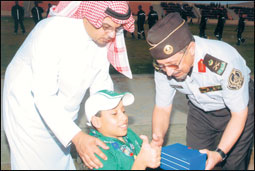 وفي بادرة مباركة من كلية الملك خالد العسكرية وتقديراً لذوي الاحتياجات الخاصة كرم مساعد قائد الكلية السباح العالمي (المعجزة) عبدالرحمن بن حمد الحمدان بطل العالم في السباحة لذوي الاحتياجات الخاصة الذي حصل على ميداليتين ذهبيتين في بطولة شنجهاي للأولمبياد الخاص التي أقيمت في الصين في العام الحالي.