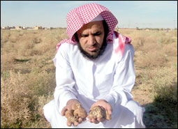 على إثر الأمطار الغزيرة التي شهدتها محافظة الرس في الفترة الأخيرة عثر عدد من المواطنين على كميات من نبات الفقع (الكمأة) والذي جاء متأخراً عن وقته ولقد هرع عدد من شباب الرس إلى الموقع الذي تم العثور فيه على هذا النبات في منطقة الرويضة شمال الرس وهي منطقة معروفة منذ القدم في خروج هذا النبات وقد كان من ضمن الذين عثروا على الفقع المواطن (فهد بن محمد البزيع) من أهالي الرس والذي وفق في الحصول على كميات تصل إلى الكيلو من الفقع والذي تظهر لنا صوره والذي بدوره جاء بها إلى مكتب الجزيرة بالرس بعد أن تم تصويرها في مكان الموقع ولا يزال الكثير من الأهالي يذهب إلى هذا المكان نظراً لمتعة العثور عليه وبالفعل فقد حصل البعض منهم على بعض كميات محدودة من هذا النبات الذي له مذاق خاص لدى هواة البر..