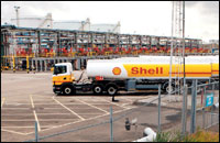 شاحنات شل متوقفة بعد أن نظم سائقوها إضرابا في بريطانيا بدأ أمس لمدة أربعة أيام للمطالبة بزيادة الأجور