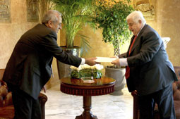 وقال المعلم في مؤتمر صحافي عقب اجتماعه مع سليمان (العلاقة تقوم اليوم على التكافؤ، يوجد رئيس توافقي عنده علاقات وثيقة مع الرئيس بشار الأسد يمكن استثمارها لحل كثير من مشاكل المرحلة السابقة).
