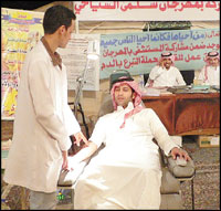 ضخ مهرجان سلمى السياحي الثاني الذي تتواصل فعالياته حاليا في عقلة بن داني بدعم مباشر من الهيئة العامة للسياحة والآثار 30 لترا من الدم لمستشفى سميراء خلال اليومين الاولين من افتتاح المهرجان من خلال العيادة التي خصصت للتبرع بالدم من قبل زوار المهرجان. وأوضح فلاح جنوح البدراني، مدير مستشفى سميراء، أن المهرجان ساهم بشكل كبير في ضخ كميات كبيرة لبنك الدم في المستشفى لافتا إلى أن إدارة المستشفى استفادت من المهرجان بتوزيع المنشورات التوعوية على زوار المهرجان.