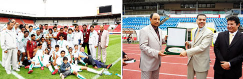 وقدم الأستاذ عبدالله المصيليخ مدير المنتخب السعودي للشباب درع الاتحاد العربي السعودي لكرة القدم إلى سكرتير السفارة السعودية في جمهورية التشيك الأستاذ محمد خياط إضافة إلى درع لرئيس الوفد التايلندي لمنتخب الشباب وذلك بعد نهاية المباراة.