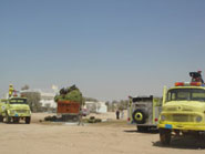 تمكنت فرق الدفاع المدني في محافظة وادي الدواسر من إخماد حريق نشب في حمولة شاحنة من نوع تريله محملة بقرابة 700 لبنة أعلاف من نوع (الرودس) بعد ارتطام الحمولة العالية بأسلاك الضغط المنخفض في الشبكة العامة للكهرباء مما أحدث ماساً كهربائياً نشب عنه الحريق بحمولة الشاحنة أثناء سيرها، وبعد أن علم قائد التريله من نشوب الحريق بذل جهوداً موفقة بالخروج بها من الموقع المجاور لأحد معارض السيارات إلى أرض فضاء وفك رأس التريلة لإبعادها عن الحريق.