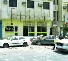 تسبب سقوط جزء من كورنيش عمارة تقع بشارع الملك عبدالعزيز ببريدة بتلفيات كبيرة لثلاث سيارات كانت متوقفة تحت العمارة السكنية التجارية إضافة إلى إصابة وافد يحمل الجنسية السودانية ولديه إعاقة بسيطة، وقد أوضح الناطق الإعلامي لمديرية الدفاع المدني النقيب جلوي الحربي بأن عمليات الدفاع المدني تلقت بلاغا يفيد بوقوع جزء من كورنيش مبنى بشارع الملك عبد العزيز وفورا تم الاتجاه للمكان وتم إبلاغ الهلال الأحمر وعند الوصول للمكان كان الجزء المتساقط من الكورنيش قد سقط على مكيفات المبنى في الدور العلوي مما أدى لسقوطها على الأرض وسحبت معها لوحة لأحد المطاعم طولها حوالي ثمانية أمتار لتسقط المكيفات على ثلاث سيارات كانت واقفة أمام المبنى وتتسبب بإصابة وافد سوداني كان بجانب المبنى والذي تم نقله لمستشفى بريدة المركزي وقد تعامل الدفاع المدني مع الحادث سريعا وأغلقت دوريات المرور المنافذ المؤدية للمبنى حتى تم استكمال اللازم. صرح بذلك ل(الجزيرة) نائب الناطق الإعلامي لدى مديرية الدفاع المدني النقيب جلوي الحربي.