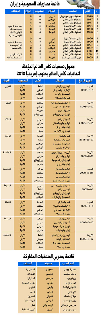 تتجه أنظار ملايين الرياضيين غداً إلى انطلاق التصفيات الآسيوية النهائية المؤهلة لنهائيات كأس العالم 2010 التي ستُقام نهائياتها في جنوب إفريقيا، حيث أكملت المنتخبات الآسيوية استعداداتها لدخول غمار هذه المنافسة والوقوف بجانب صفوة منتخبات العالم الـ32، وقد أجمع ممثلو المنتخبات العربية في سحب قرعة التصفيات الآسيوية لكأس العالم لكرة القدم 2010 في جنوب إفريقيا، على جاهزية منتخباتهم لخوض أول مباراتين خلال شهر رمضان.