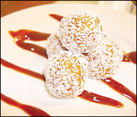 يعجن التمر بإضافة قليل من السمن ثم يقطع لقطع صغيرة ويتم وضع المكسرات داخلها ثم يتم تكويرها حتى تنتهي الكمية، وبعد ذلك يرش عليها جوز الهند من جميع الاتجاهات وتقدم في طبق ويمكن تجميله ببعض الشوكلاته السائلة على سطح الطبق.