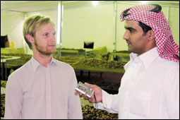 التقت الجزيرة بالمهندس الألماني دانيال إنقلهاردت في أجنحة المهرجان وجاء متسوقاً وأبدى إعجابه الشديد في تمور رياض الخبراء وقال دانيال هذه هي المرة الثانية التي أهدي فيها التمور لأهلي وأصحابي في ألمانيا حيث سبق وأن أعجبهم المذاق المتميز للتمر وقرأت عن فوائده في الكتب العلمية، وأضاف: تتميز رياض الخبراء والخبراء بمنتجاتها الزراعية ووقفت على بعض المزارع وشدني اهتمام المزارعين بنخيلهم والعناية بها وعن التمور في ألمانيا قال: كل ما في أسواقنا مستورد من دول شمال إفريقيا وإيران وأمريكا ولا تصلنا منتجات تمور السعودية ولا نجد الأصناف المتميزة كما أراه أمامي الآن ويصل إلى أسعار مضاعفة وأكد أهمية الاهتمام في تصدير التمور وتغليفها في أشكال متميزة لتأخذ طريقها إلى السوق الأوروبي والعالمي ودراسة السوق الخارجي جيداً.