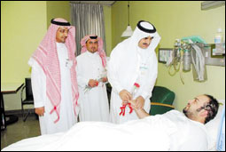 نيابة عن الدكتور سليمان بن عبدالعزيز السحيمي مدير عام برنامج مستشفى قوى الأمن، قام الدكتور عبدالله أبو ملحة مدير عام برنامج مستشفى قوى الأمن المكلف مساعد مدير عام البرنامج للشؤون الطبية، يرافقه الدكتور محمد صلاح عبدالجبار المدير الطبي وممثلون عن إدارة العلاقات والاعلام وإدارة الخدمة الاجتماعية صباح أول أيام عيد الفطر المبارك بجولة داخل أقسام المستشفى، وقد زار الجميع خلالها المرضى المنومين وقدموا لهم التهاني بالعيد السعيد، كما نقل الدكتور أبو ملحة للمرضى تهاني ومعايدة صاحب السمو الملكي الأمير نايف بن عبدالعزيز وزير الداخلية وصاحب السمو الملكي الأمير أحمد بن عبدالعزيز نائب وزير الداخلية وصاحب السمو الملكي الأمير محمد بن نايف بن عبدالعزيز مساعد وزير الداخلية للشئون الأمنية وتهاني الدكتور سليمان السحيمي مدير عام برنامج المستشفى بمناسبة حلول عيد الفطر المبارك.وأثناء الجولة قام الدكتور أبو ملحة والمرافقون بتوزيع باقات من الورود وبطاقات المعايدة وهدايا على المرضى المنومين.