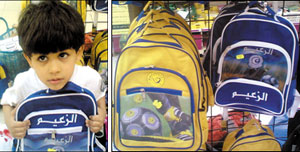 اختارت الشركات والمحلات التجارية المروِّجة للحقائب المدرسية، شعارات الأندية الرياضية لترويج منتجاتهم، وتلاقي الحقائب التي تحمل شعار ناديي الهلال والنصر، إقبالاً كبيراً من الطلبة وخاصة من صغار السن، وباتت شعارات الأندية تنافس الشخصيات الكرتونية في تزيين الأدوات المدرسية ...>>>... | |