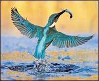 منظمة حماية ألمانيا البيئية NABU ترشح طائر الرفراف كطائر عام 2009م، وفي الصورة يبدو الطائر (الفائز) وهو مستمتع بوجبة سمك التقطها من نهر في ألمانيا. *أ.ف.ب |