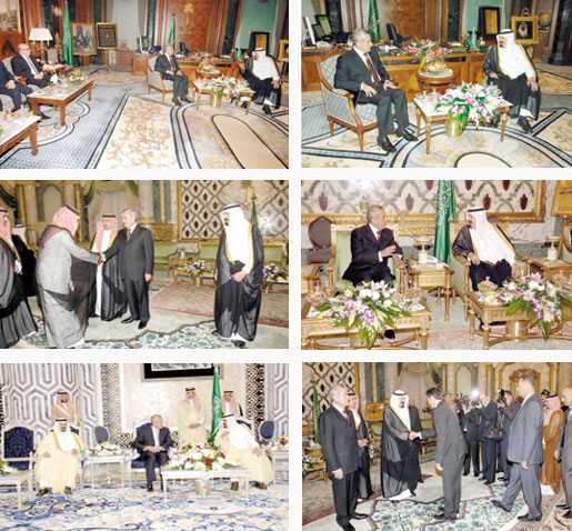 وقد عبر فخامته عن شكره وتقديره لخادم الحرمين الشريفين مؤكداً اعتزازه بهذا التكريم. حضر جلسة المباحثات صاحب السمو الملكي الأمير عبدالرحمن بن عبدالعزيز نائب وزير الدفاع والطيران والمفتش العام وصاحب السمو الملكي الأمير متعب بن عبدالعزيز وزير الشؤون البلدية والقروية وصاحب السمو الملكي الأمير خالد الفيصل بن عبدالعزيز أمير منطقة مكة المكرمة وصاحب السمو الملكي الأمير سعود الفيصل وزير الخارجية وصاحب السمو الملكي الأمير عبدالإله بن عبدالعزيز مستشار خادم الحرمين الشريفين وصاحب السمو الملكي الأمير مقرن بن عبدالعزيز رئيس الاستخبارات العامة ومعالي وزير التجارة والصناعة الأستاذ عبدالله بن أحمد زينل الوزير المرافق ومعالي سفير خادم الحرمين الشريفين لدى لبنان الدكتور عبدالعزيز محيي الدين خوجة.