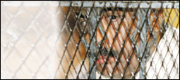 وقد أضيف إلى القفص جدار عازل من الحديد المسلح والأسلاك الشائكة لمنع أي اتصال أو اشتباك معهما.