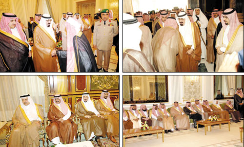 استقبل خادم الحرمين الشريفين الملك عبدالله بن عبدالعزيز آل سعود - حفظه الله - في الديوان الملكي بقصر اليمامة أمس أصحاب السمو الملكي الأمراء وكبار موظفي الديوان الملكي وكبار موظفي ديوان رئاسة مجلس الوزراء وكبار المسؤولين وقادة وضباط الحرس الملكي.كما استقبل الملك المفدى جمعاً من المواطنين الذين قدموا للسلام عليه - رعاه الله - وتهنئته بسلامة الوصول إلى الرياض. وفي بداية الاستقبال أنصت الجميع إلى تلاوة آيات من القرآن الكريم مع شرحها وتفسيرها ثم تشرف الجميع بالسلام على خادم الحرمين الشريفين.