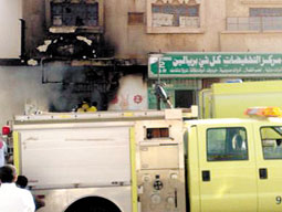 اشتعلت النيران بكثافة في محل لبيع أغراض أبو ريالين في سوق النساء الغربي بمحافظة طريف ولم تتوقف النيران حتى التهمت كل محتويات وبضاعة المحل، وقد وصلت سيارات الدفاع المدني بمحافظة طريف إلى موقع الحادث بقيادة مدير الدفاع المدني المقدم فرحان عواد الحازمي والرائد عبد الله الطرقي، حيث تم تطويق الحريق قبل أن ينتقل إلى المحلات المجاورة التي تنتشر في الشارع، وحسب التحقيقات الأولية في الحادث يتوقّع أن يكون سبب الحريق التماس كهربائي من جهاز التكييف في المحل، فيما لم تسجّل إصابات ولله الحمد فيما عدا خسائر مادية كبيرة وخصوصاً أن الحريق لم يترك خلفه شيئاً.
