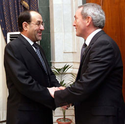 أعلن رئيس الوزراء العراقي نوري المالكي الأحد أن العراق سيعين فريقاً تفاوضياً لبحث مستقبل القوات البريطانية قبل انتهاء تفويض الأمم المتحدة نهاية العام الجاري. ونقل بيان حكومي عن رئيس الوزراء نوري المالكي خلال لقائه وزير الدفاع البريطاني جون هوتن الذي قام بزيارة مفاجئة للعراق ...>>>... |