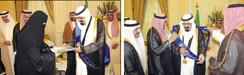 بتواضع الفرسان ونبل أخلاق الكبار، تسلم خادم الحرمين الشريفين الملك عبد الله بن عبد العزيز - حفظه الله - يوم أمس شهادة الدكتوراه الفخرية الممنوحة له من جامعة الملك سعود وارتجل - أيده الله - كلمات ضافية خلال استقباله وزير التعليم العالي الدكتور خالد العنقري ومدير جامعة الملك سعود الدكتور عبد الله العثمان قائلاً: