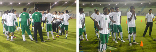 استأنف منتخبنا للشباب تدريباته بمعسكر الدمام بعد أن قضى اللاعبون إجازة منحت من إدارة المنتخب بعد عودتهم من المشاركة بالدورة الدولية الودية بأبوظبي وفاز بلقبها بمشاركة منتخبات أوزبكستان والمغرب والمستضيف الإمارات وفور عودة النجوم إلى المعسكر الذي بدأ من ظهر أمس حتى قرب موعد التدريبات والذي فرضه المدرب نيلسون باليوم الأول عند الساعة 7.30 على استاد الأمير محمد بن فهد بالدمام بمشاركة جميع اللاعبون ما عدا لاعبي نادي الاتحاد والأهلي كل من اللاعب عبدالحيم الجيزاوي محمد الستري (الأهلي) باسم المنتشري محمد ابوسبعان عمر خضري (الاتحاد) والذي جاء بسبب تأخر رحلة الطيران ساعتين عن الموعد المحدد لهم ما أدى إلى وصولهم قبل بداية التدريب بأقل من الساعة مما اضطر المدرب إلى إراحتهم بالفندق ليكون التدريب لباقي اللاعبين وبحضور ومتابعة من مدير المنتخب الأستاذ عبدالله المصيليخ الذي تواجد في المعسكر من صباح أمس الأول وبمرافقة الجهاز الفني والإداري الذي استقبل اللاعبين تلو الآخر وقد اقتصرت تدريبات اليوم الأول على إعادة تأهيل اللاعبين لياقيا وذلك من خلال الجري الخفيف بقيادة المدرب ماركس مدرب اللياقة لتتحول بعدها التدريبات إلى المدرب نيلسون الذي جاءت البداية بمحاضرة نظرية للاعبين أكد من خلالها على أهمية المرحلة المقبلة وهذا المعسكر الذي يحتاج عمل اكبر من حيث الانضباط داخل الملعب وأيضا التركيز على الاستعداد والجمل التكتيكية أكثر انتظارا لمباريات المجموعة الأولى لنهائيات كاس آسيا ومشوار البطولة فيما بعد.