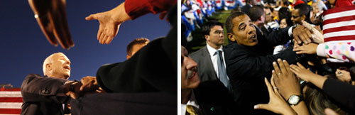 صعّد المرشحان الديموقراطي باراك اوباما والجمهوري جون ماكين حملتهما الانتخابية السبت، قبل تسعة أيام من موعد الانتخابات وركّز ماكين، الذي يحاول بكل السبل تعويض تراجعه في استطلاعات الرأي، هجومه على خطة اوباما لما أسماه (إعادة توزيع الثروة) التي اعتبر أنها مضرة بالأميركيين.
