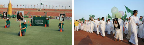 تحت شعار (وفاء الأبناء لجيل الآباء) نظمت جامعة الملك فهد للبترول والمعادن فعاليات مهرجان اليوم الوطني في الاستاد الرياضي بالجامعة، وذلك برعاية مدير الجامعة د. خالد السلطان.