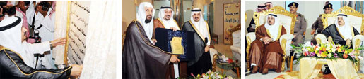 بعد ذلك كرم سموه الداعمين للمستشفى حيث تسلموا الهدايا التذكارية من يد سموه كما تسلم وسمو نائبه درعين تذكاريين من الطريف ليغادر بعد ذلك وسمو نائبه مقر المستشفى مودعاً بزخات المطر التي استقبلته حين وصوله.