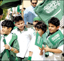 عدد من طلاب مدارس الملك فيصل خلال تقديم أحد الأوبريتات الوطنية...>>>... |
