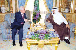 عدَّ صاحب السمو الملكي الأمير نايف بن عبدالعزيز وزير الداخلية عمليات التسلل من المملكة إلى العراق نادرة، مشيراً في الوقت ذاته إلى أن المملكة بصدد تنفيذ السياج المزمع بناؤه على حدودها مع العراق، بهدف منع أي محاولة للتسلل من المملكة إلى العراق. وأكد سموه في تصريح صحافي عقب ...>>>... | |