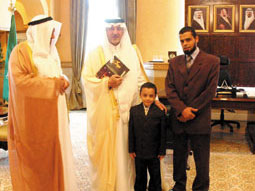 استقبل صاحب السمو الملكي الأمير خالد الفيصل بن عبد العزيز أمير منطقة مكة المكرمة الرئيس الفخري للجمعية بمكتب سموه رئيس مجلس إدارة الجمعية الخيرية لتحفيظ القرآن الكريم بمحافظة جدة، المهندس عبد العزيز بن عبد الله حنفي، يرافقه أصغر حافظ في العالم الطالب تبارك كامل اللبودي، وذلك يوم الاثنين 28-10-1429هـ. والذي حفظ كامل القرآن الكريم ضمن (750) طالباً وطالبة احتفلت الجمعية بتخرجهم هذا العام.
