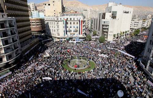 من جهة أخرى تجمع عشرات الآلاف من المتظاهرين الخميس في وسط العاصمة السورية وهم يرددون هتافات ضد الولايات المتحدة احتجاجا على (العدوان الأميركي) على الأراضي السورية في البوكمال.