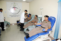 بريدة - أحمد السالم:أقامت إدارة دوريات الأمن بالقصيم حملة تبرع بالدم وذلك بمستشفى الملك فهد التخصصي بمدينة بريدة يتقدمهم مساعد مدير الإدارة العقيد صالح المطير.ذكر ذلك مدير المختبر وبنك الدم بالمستشفى الأستاذ حمود البطي.