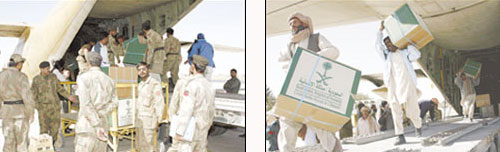 وكان في استقبال الطائرة التي تحمل على متنها (10أطنان) من المواد الغذائية والطبية والخيام والأغطية مندوب الحكومة الباكستانية حمد رحيم ومندوبا وزارة المالية خالد الشرهان وعبيد الرشيدي وعدد من المسؤولين في الحكومة الباكستانية.