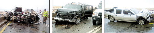 سجل طريق الرس دخنة أول أمس الاثنين حادثا مروريا مروعا على جسر وادي النساء عندما اصطدمت سيارة نيسان بيك أب يقودها طالب وشقيقته الممرضة بسيارة جيمس (صالون ) نقل معلمات, لتتوالى الحوادث بعد ذلك حيث اصطدمت سيارة أخرى نيسان يقودها معلم بجمس معلمات آخر ويأتي جمس آخر ينقل طالبات ليصطدم هو الآخر بإحدى السيارات, ومن شدة الإصطدام عانقت بعض السيارات السياج المعدني للجسر, وقد تم نقل المعلمات المصابات للمستشفى عن طريق بعض المواطنين, في حين أعلن المستشفى حالة استنفار بإشراف من مدير القطاع الصحي بالرس الدكتور محمد الرثيع, فيما باشر الحادث مركز الدفاع المدني بدخنة ومخفر الشرطة ومرور الرس, يذكر أن الطالب وشقيقته لحقت بهم إصابات بالغة, هذا وبلغ عددهن عشر معلمات وثمان طالبات بالإضافة إلى قائدي السيارات.