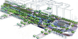 كما ستحتوي الحديقة العلوية (البلازا) التي تقام فوق النفق الممتد من تقاطع الطريق مع طريق الملك فهد حتى شارع العليا بطول 700 متر، على مناطق خضراء ومشجرة، تحيط بساحة عامة قريبة من محطة القطارات المركزية التي ستقام على تقاطع طريق الملك عبدالله مع طريق العليا.